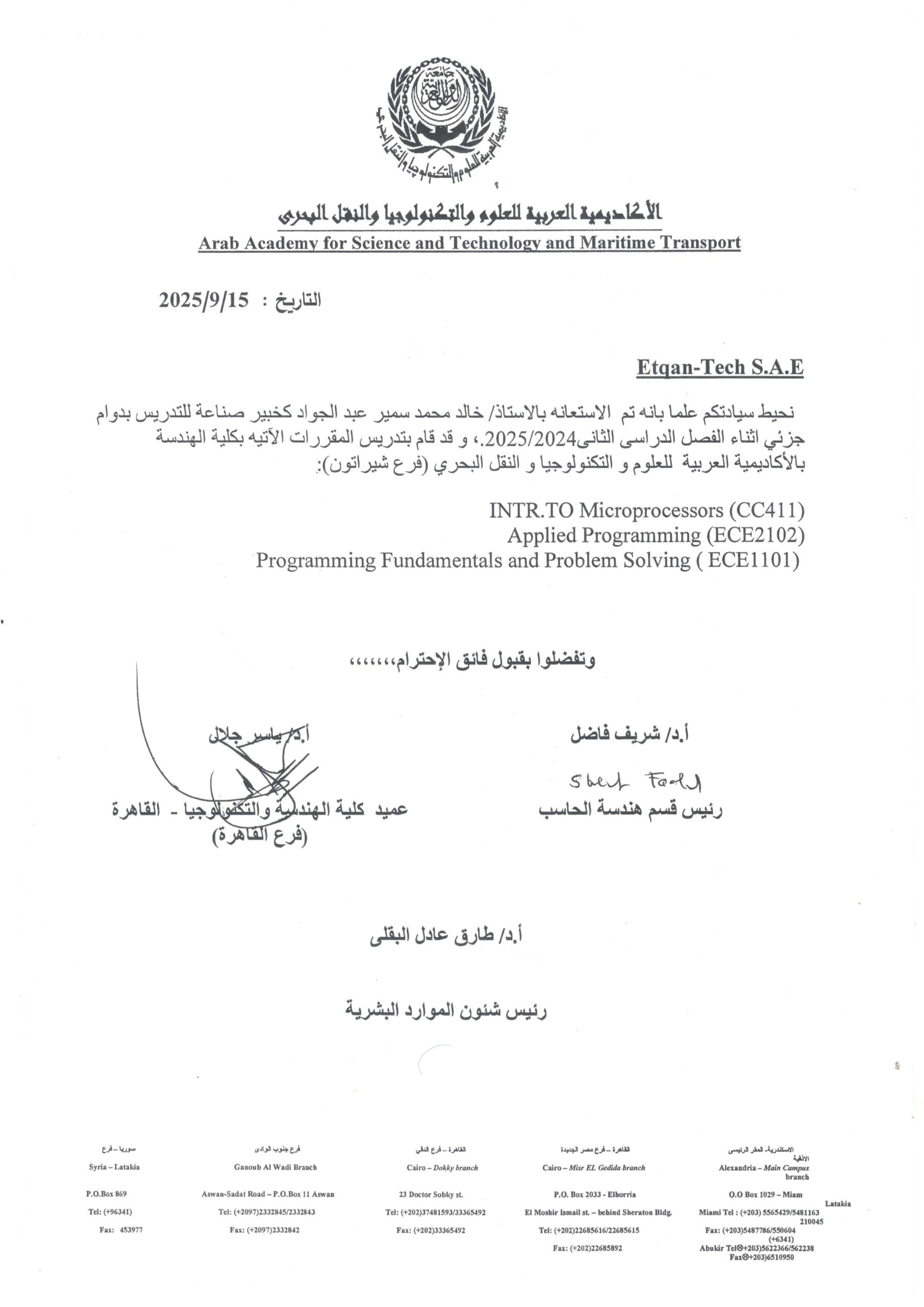 Chair Computer Engineering Department AASTMT College of Engineering and Technology in Cairo